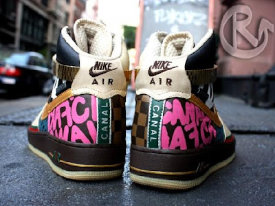 These Air Force 1 Hi’s are inspired by the variety of fake vendors on Canal Street. Did you peep the Canal Street label on the back and the gold watch link? Priceless! They're available at custom shops such as Sole Food.